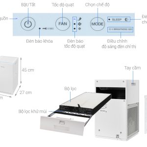 Với cấu trúc cải tiến, áp dụng khái niệm phòng sạch trong lĩnh vực y tế, không khí sẽ không thể len lỏi của qua kẽ hở giữa bộ lọc và thân máy, từ đó thổi ra luồng không khí sạch triệt để cho căn phòng. Ngoài ra, thiết kế này giúp máy vận hành êm ái (cường độ âm thanh chỉ 19db) và cải thiện hiệu năng. Vị trí quạt (nguồn âm chính) được đặt ở phía dưới cùng – vị trí cách xa tai người nhất, ở phía trên là bộ lọc và cửa thoát gió rộng hơn. Từ đó, bộ lọc sẽ cách âm và luồng gió vào và ra cách biệt, không bị quẩn gió và tạo ra tiếng gió nhẹ hơn.